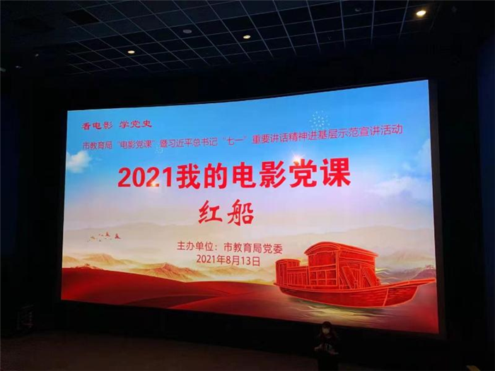 為深入學習貫徹習近平總書記在慶祝中國共產黨成立100周(zhōu)年大會上(shàng)的重(chóng)要講話精神,紮實(shí)推進教育係(xì)統黨史學習教育,8月13日下午,市教育局黨委(wěi)創新開展“電影黨課”暨習近平總書記“七一”重要講(jiǎng)話精神進基層示範宣(xuān)講活動。馬(mǎ)鞍山二(èr)中黨委副書記聶曉霞(xiá)以及下(xià)屬各黨(dǎng)支(zhī)部8名黨員代表參加活動。