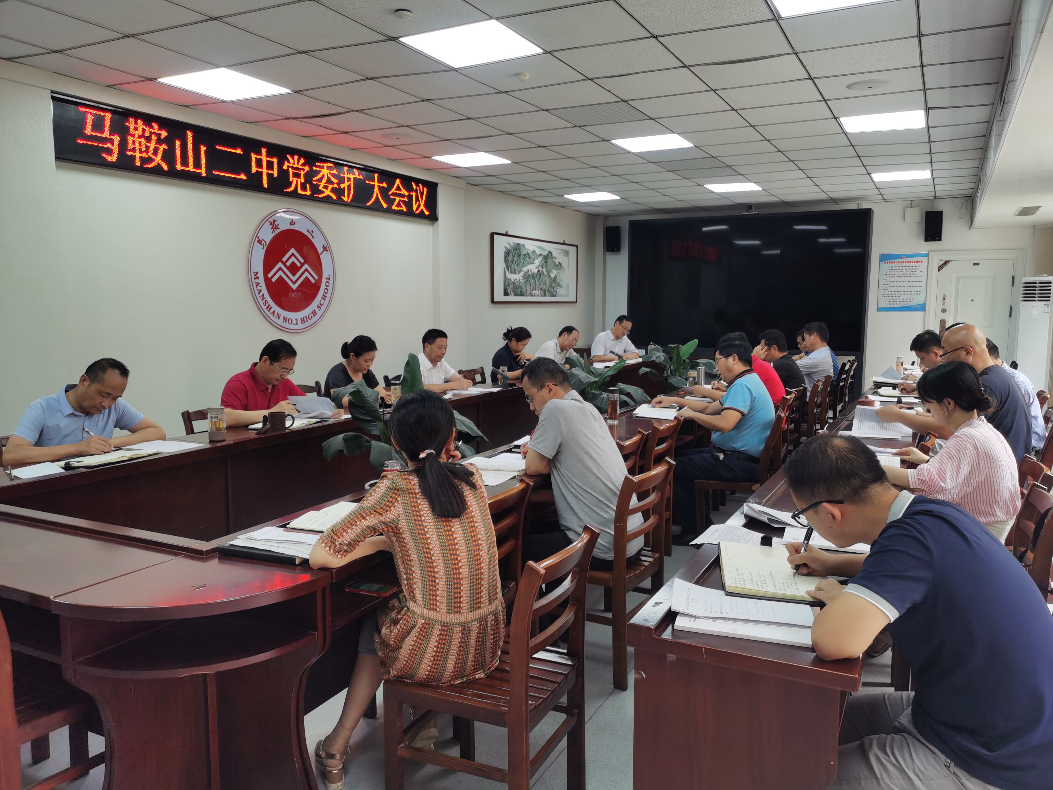 9月13日,馬鞍山二中(zhōng)黨委在行政樓一樓會議室召開黨委擴大會。黨委書記、校長王玉平主持會議,學校黨委委員、各(gè)支部書記、學校(xiào)中(zhōng)層以上黨員幹部(bù)參加了會議。
