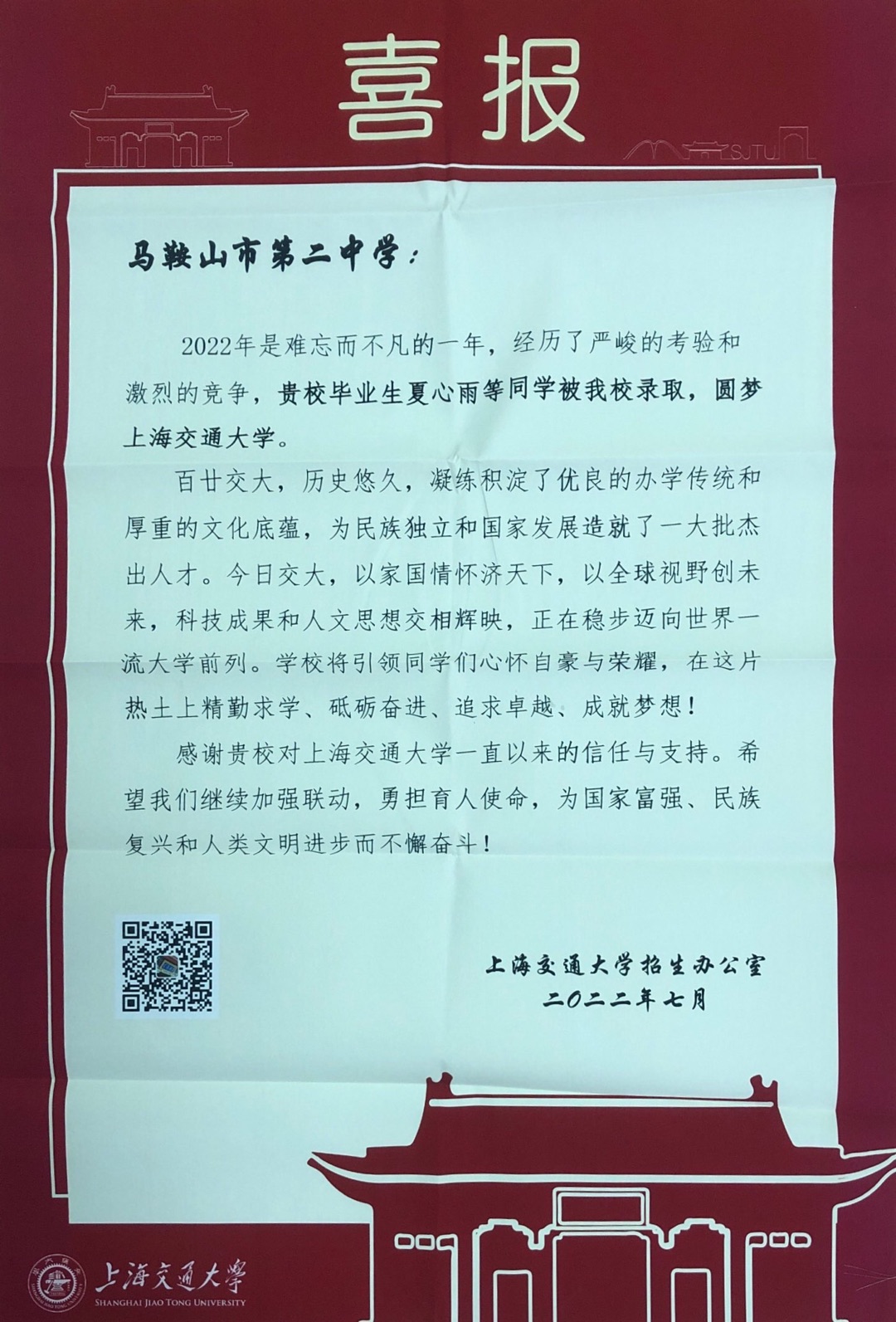 您現在的位置:首頁 - 校園文(wén)化(huà) - 校友聯誼 - 上海交通大學向我校發來喜報